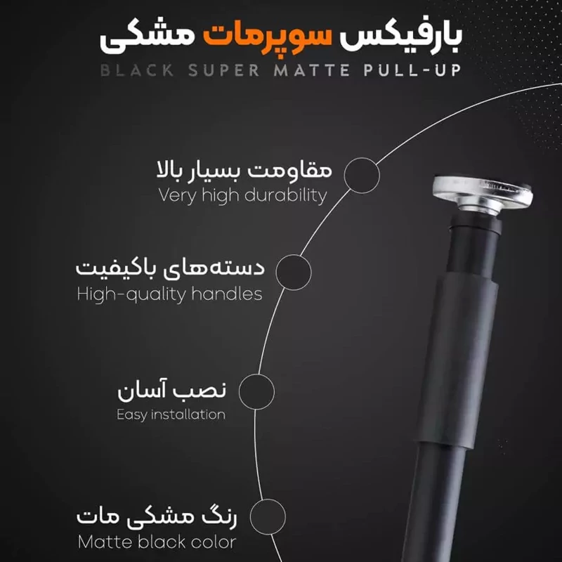 ✔️ تحمل وزن تا 120 کیلوگرم ✔️ میله بارفیکس یک وسیله ضروری برای هر خانهای است. این تجهیز ورزشی این امکان را ایجاد میکند که از بلااستفادهترین قسمت خانه بهترین استفاده را ببریم. تنزیب به عنوان تولید کننده وسایل ورزشی خانگی در سالهای اخیر بهترین و با کیفیتترین بارفیکسهای داخل بازار را ارائه داده است. در طراحی و تولید انواع متنوع بارفیکسها ، تنزیب بارفیکس مشکی مات خود را روانه بازار کرده است. این بارفیکسها با قطر 32 و تحمل وزن 120 کیلوگرم از قویترین بارفیکسهای تنزیب است که با رنگ جذاب و خاصی ارائه شده است.